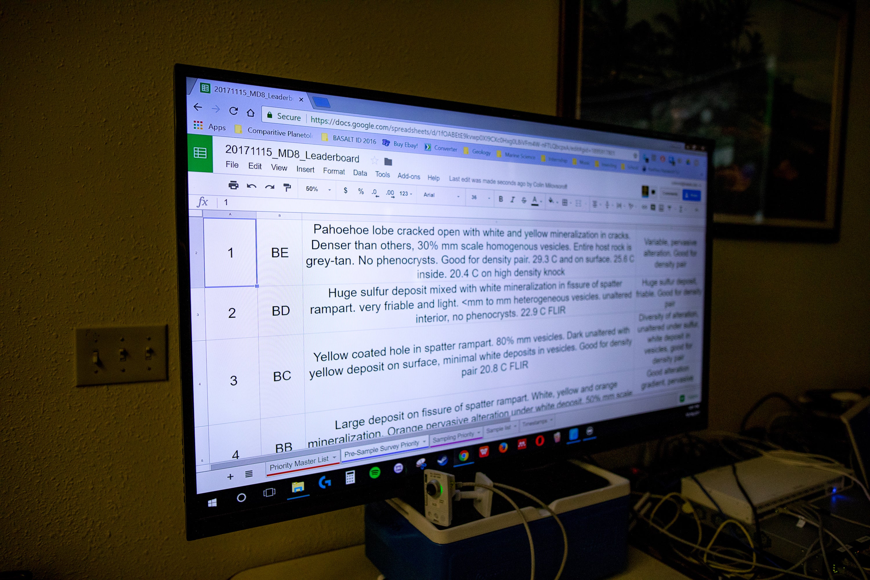 Därefter bytte teammedlemmarna roller och arbetade igenom processen upprepade gånger för att hjälpa till att belysa eventuella brister eller problem i den föreskrivna processen som de skulle presentera för det eventuella utforskningsteamet på marken. EVA-teamet rör sig i en krets och samlar in de prover som de instruerats att göra baserat på vad specialisterna på jorden säger, tar hänsyn till tidsfördröjningen och utnyttjar mänsklighetens hittills dyraste och mest riskfyllda vistelse på bästa möjliga sätt.
