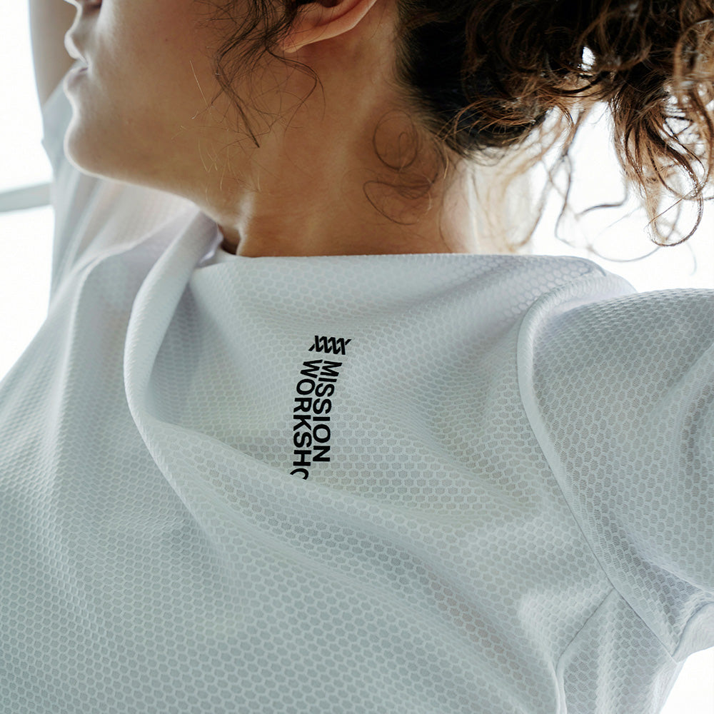 Mission Pro Tech Tee är tillverkad av ett italienskt, öppet, dimensionellt nät som ger en exponentiellt ökad yta för andningsförmåga och snabb torkning. Förbättrad fukttransport uppnås genom att två olika garner skapar en skillnad som drar bort fukten från kroppen. Passar perfekt som baslager, som alternativ till en tröja eller helt enkelt som en högpresterande t-shirt.