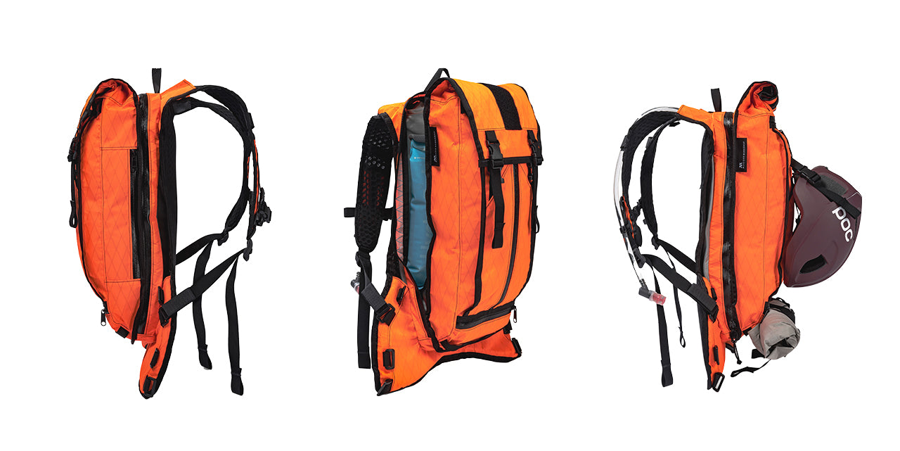 Vätskeryggsäcken har totalt fyra väderbeständiga ytterfickor som ger enkel åtkomst till utrustningen, och den medföljande verktygsrullen är helt avtagbar och organiserar alla viktiga saker. En rad externa remmar kan användas för att fästa hjälm, ryggskydd och mycket annan utrustning.