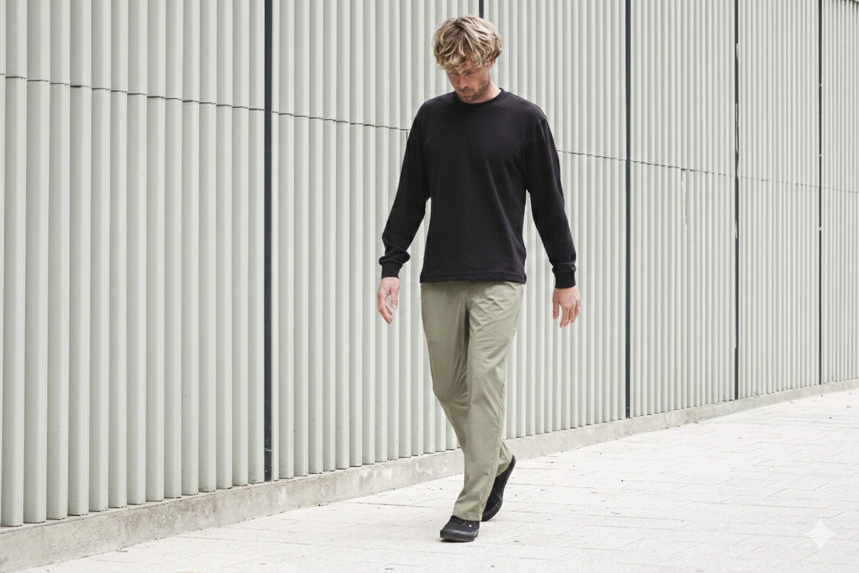 The Atlas is a relaxed fit travel chino constructed from a lightweight stretch textile sourced from Italy and selected for durability, comfort, and long term performance. The fabric combines abrasion resistance with flexibility, making it well suited for daily wear and constant movement. It is offered in 32 inch and 34 inch inseam lengths.