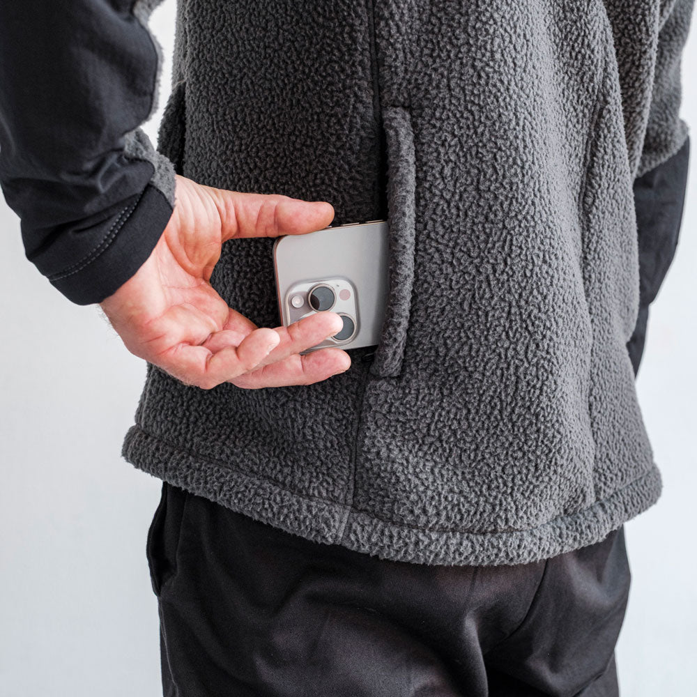 The Bosun : Fleece blends refined design with the technical performance required for daily use across a wide range of environments. Constructed from 305gsm shearling poly-fleece, it delivers an exceptional warmth-to-weight ratio, maintaining insulation and breathability even when wet.