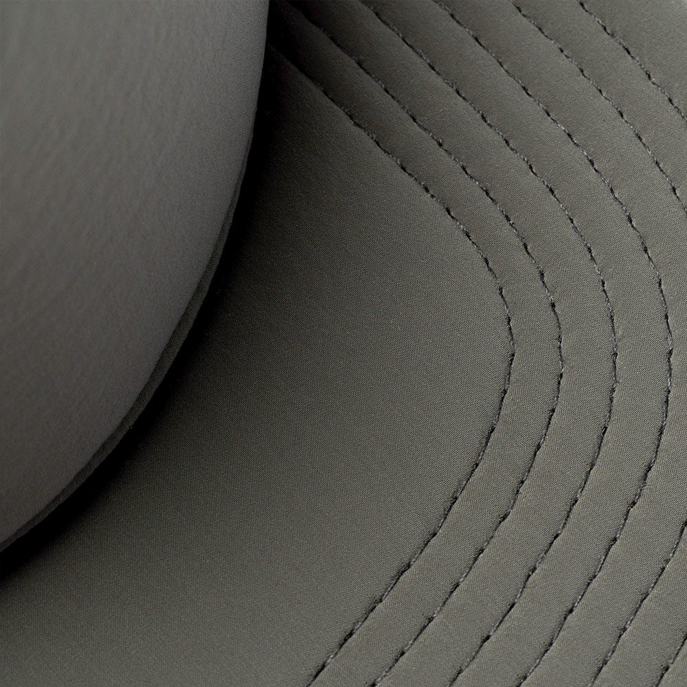 Den främre delen har en miljövänlig DWR-behandling (durable water repellant) som håller hatten lätt i våta förhållanden och gör att den torkar snabbt. Baksidan justeras enkelt med ett nylonband och snabbspänne medan ett dolt garage håller justeringsänden snyggt undanstoppad.