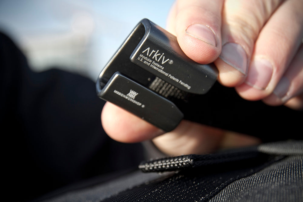 Med Arkiv-skenor på axelselen rymmer Fitzroy även Arkiv®-tillbehör med enkelskena, t.ex. cell- och verktygsfickan. Ytterligare funktioner är Aquaguard YKK-dragkedjor och ett invändigt ramskydd för optimal viktfördelning.
