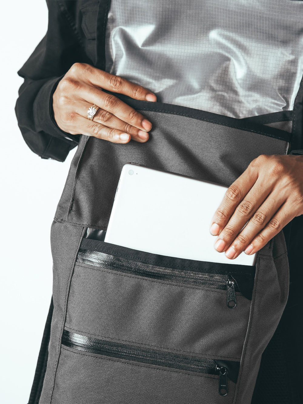 Den har samma egenskaper som våra större ryggsäckar i en mindre ram, t.ex. väderbeständiga fack, uretanbelagda dragkedjor, vattentäta material och en invändig ramfolie. Den invändiga fickan med dragkedja rymmer bärbara datorer upp till 13 tum, och det väderbeständiga fodret ger styrka och skydd åt din utrustning.