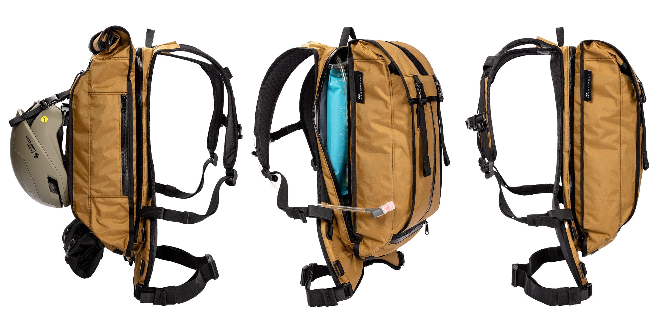 Vätskeryggsäcken har totalt fyra väderbeständiga ytterfickor som ger enkel åtkomst till utrustningen, och den medföljande verktygsrullen är helt avtagbar och organiserar alla viktiga saker. En rad externa remmar kan användas för att fästa hjälm, ryggskydd och mycket annan utrustning.