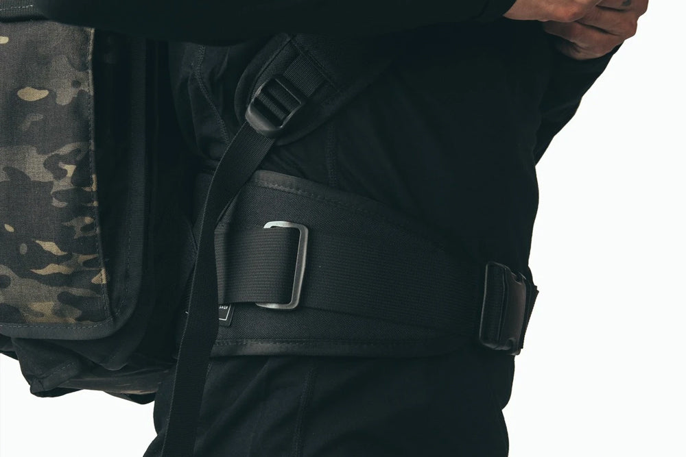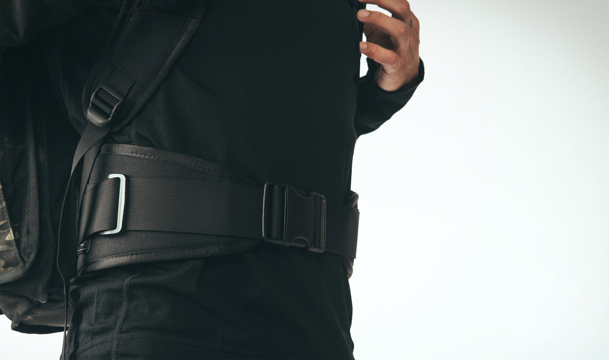 Vårt midjebälte med låg profil har tagits fram för extra tung last och integreras sömlöst med ryggsäckens inre ram för att fördela vikten jämnt på höfterna. Det justerbara, fullt vadderade midjebältet kan enkelt tas bort när det inte behövs och förvaras i ryggsäcken eller någon annanstans för senare användning.