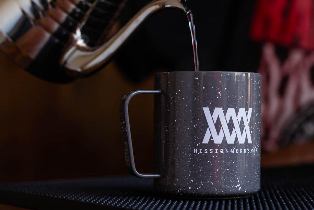 Vi samarbetar med Miir för att erbjuda en prickig lägerkopp som tål samma påfrestningar som våra väskor och kläder. Som en återkoppling till den gamla emaljmuggen från tidigare generationer har den här fått en högglansig finish.