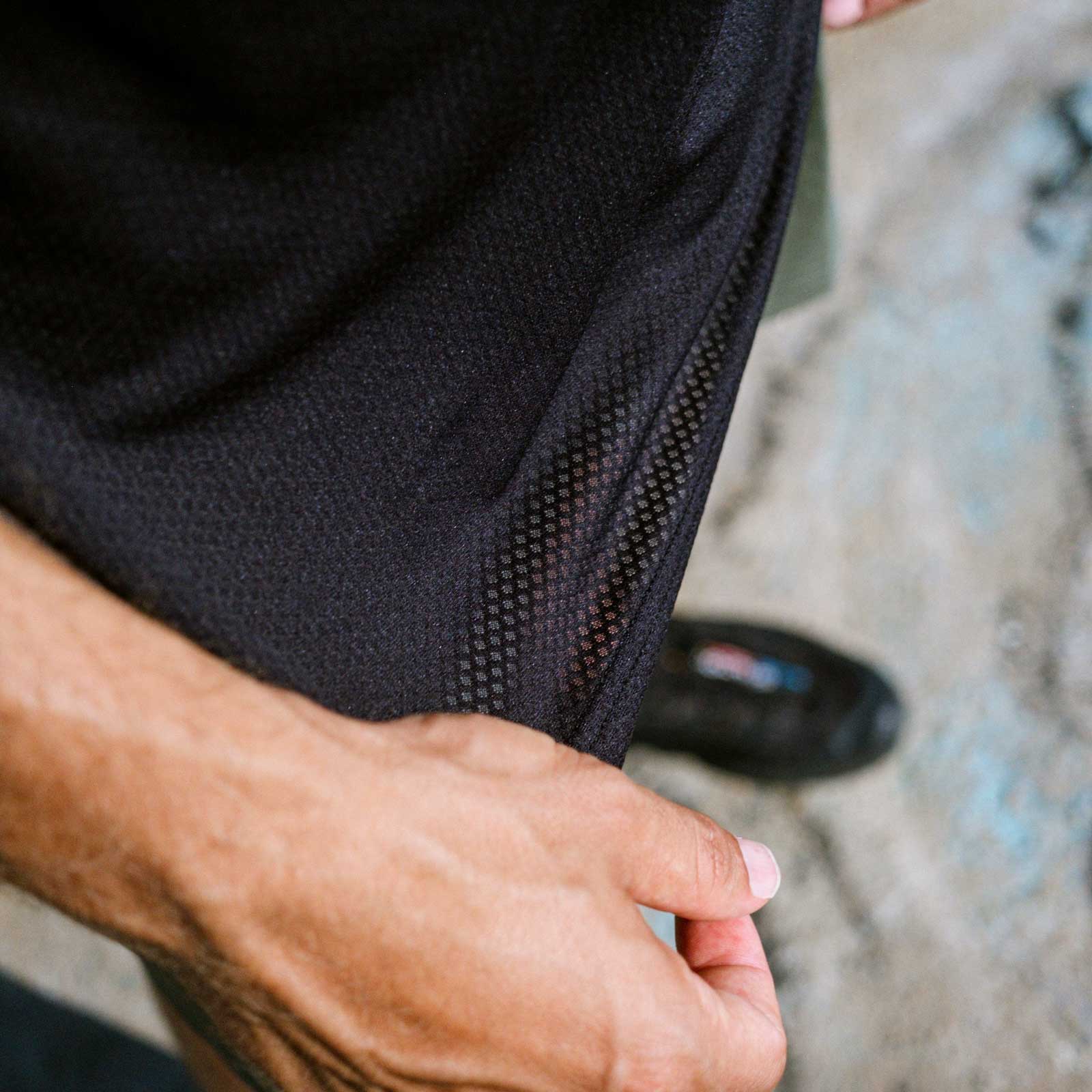 Mission Tee: Quick Dry är tillverkad av italienskt, öppet stickat dimensionellt nät, som är konstruerat för att öka ytan för enastående andningsförmåga. Konstruktionen med dubbla garner leder effektivt bort fukt från kroppen och håller dig torr och bekväm under alla förhållanden.