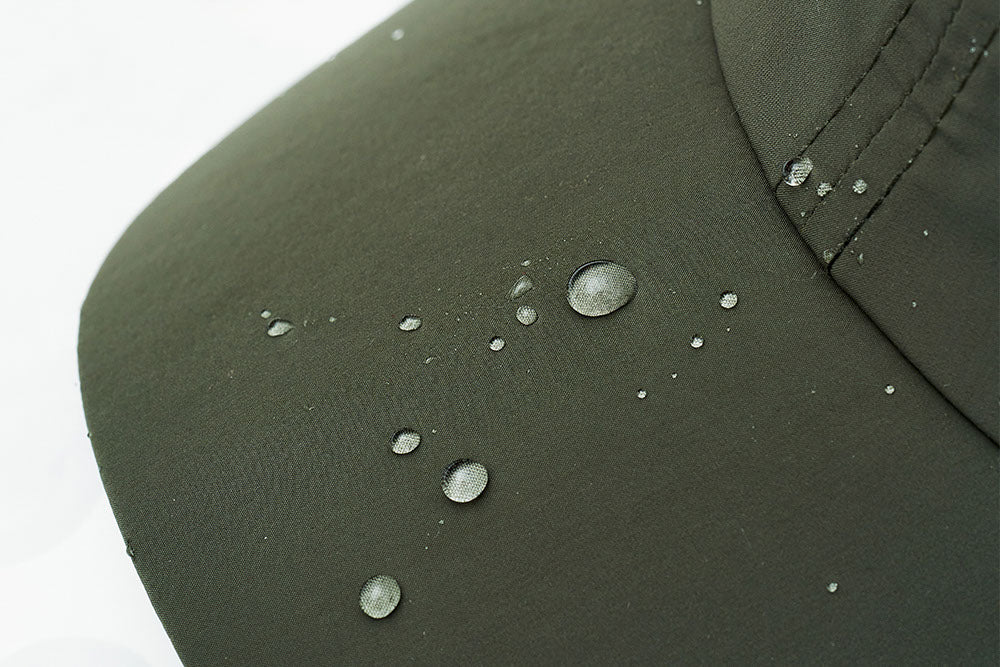 Det fukttransporterande tyget har en DWR-behandling (Durable Water-Repellent) och ett ventilerat pannband i mesh som håller dig torr även i lätt regn.
