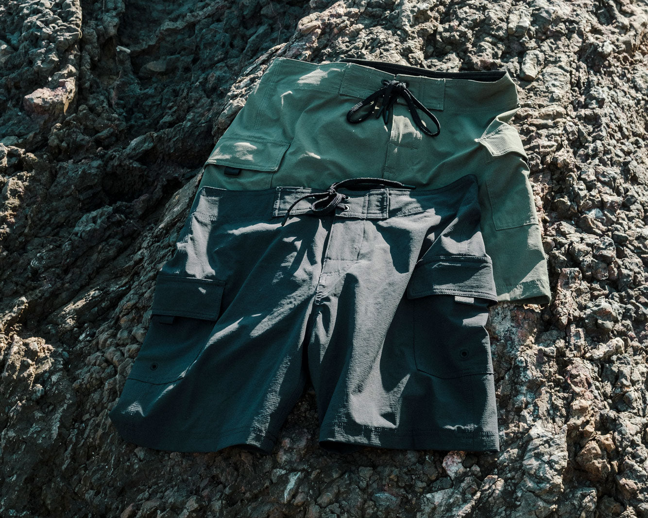Ocho : Grid är vår klassiska kortbyxa för brädåkning tillverkad i en avancerad stretchvävd ripstop-nylon av Olmetex i Italien. Tyget har en enorm stretch men behåller sin struktur under alla förhållanden och har en PFC-fri DWR för att underlätta snabb torkning när du är ute ur vattnet.