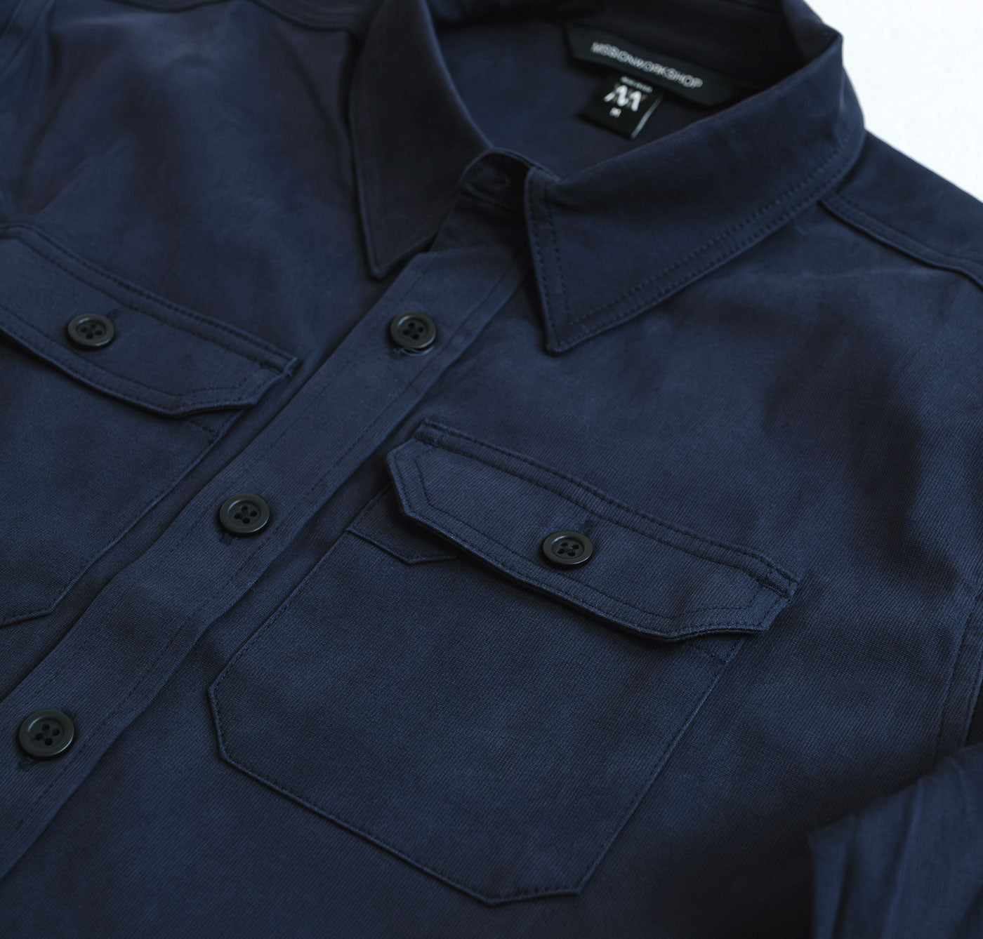 The Sansom OG is our classic mid-weight button up built from the original Japanese stretch cotton that defined the first Sansom shirt. The prewashed fabric offers easy mobility and a clean drape, with a subtle texture that delivers a tough yet refined feel. It works well on its own as a shirt or as a lightweight alternative to a jacket. Details include dual chest pockets and articulated sleeves for improved range of motion. This is a versatile everyday piece that dresses up or down with ease and earns a permanent place in any wardrobe.