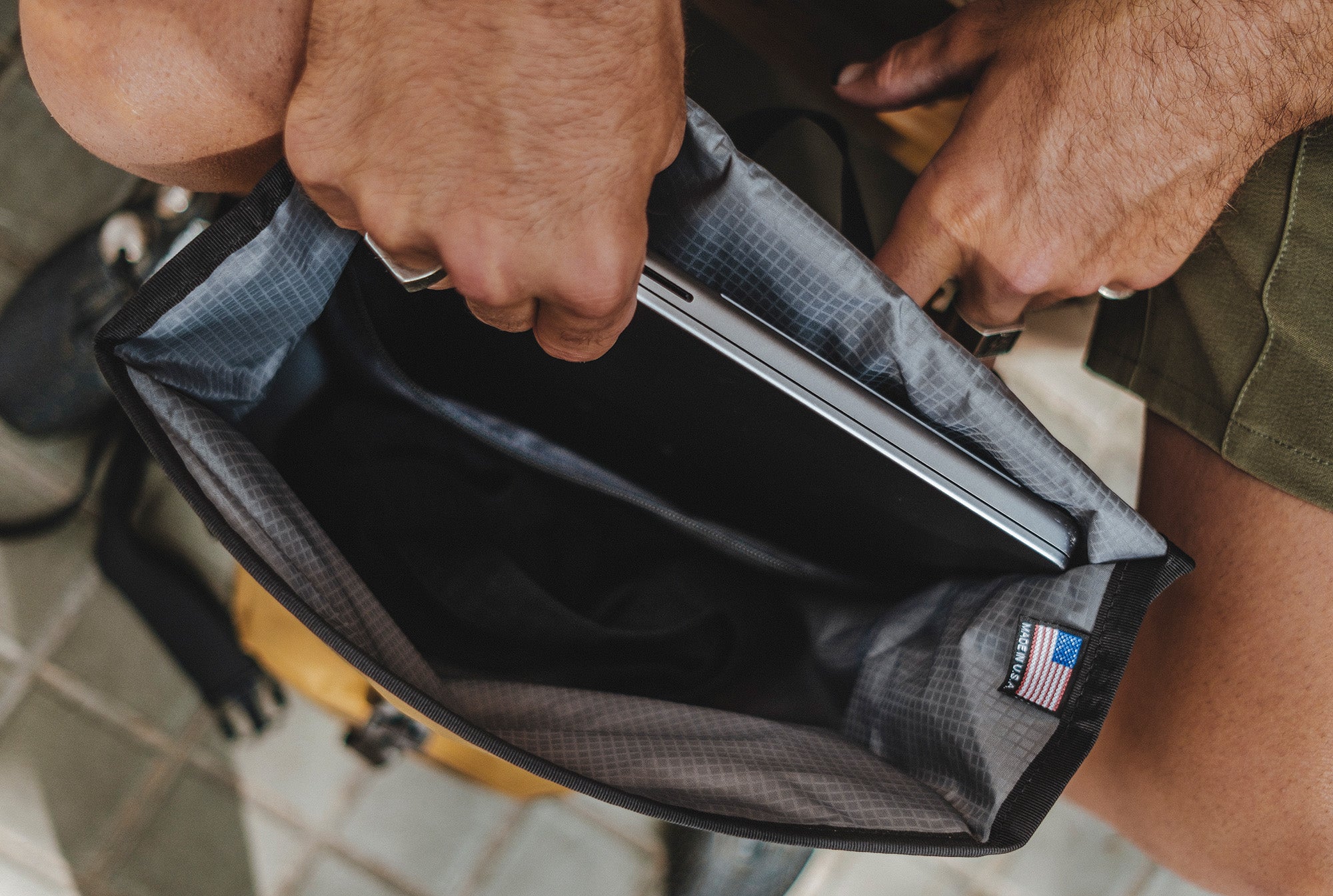 Huvudlastutrymmet har gott om plats plus ett vadderat och vattentätt laptopfack med dragkedja som passar upp till 16" MacBooks. Facket är försett med en magnetisk Fidlock-stängning för snabb och pålitlig åtkomst och har ett höftbälte med justerbar position, bröstremmar och en inbyggd ögla för belysning.