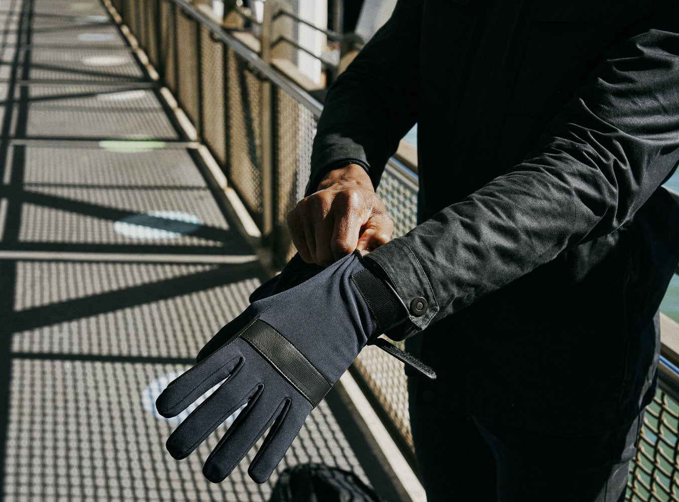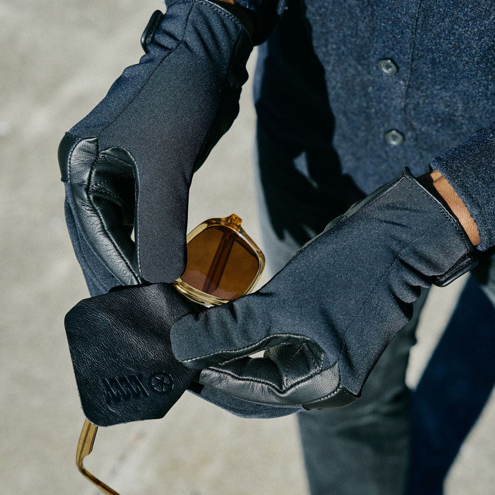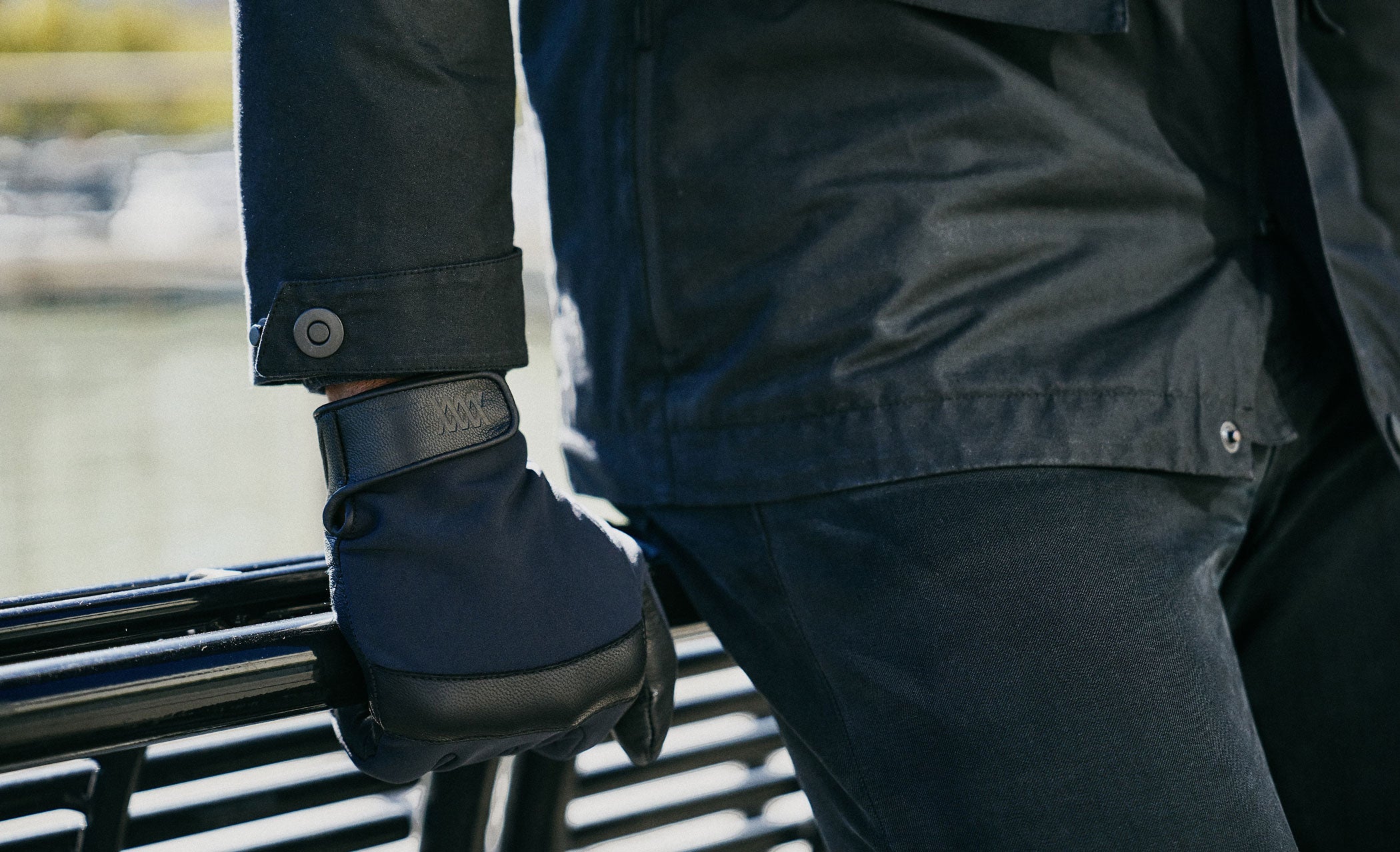 The top of the hand is constructed from Swiss made Schoeller® wb-400 softshell, a fabric that offers warmth, breathability, and weather resistance. This 4-way stretch, water- and wind-resistant material is bonded with Schoeller's c_change® waterproof/breathable membrane and finished with NanoSphere® for enhanced water and oil repellency. On the palm side, we’ve used Siciliano Pellami’s Hydronaut leather, which provides PFAS-free water resistance. The leather is dyed and treated in Italy to deliver a soft, tactile feel supplying sensitivity and comfort while maintaining excellent abrasion resistance and breathability.