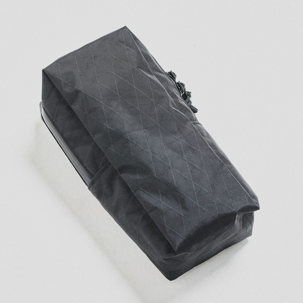 The body is built from Dimension Polyant VX21, a technical laminate originally developed for advanced sail applications. Its 210 denier nylon face resists abrasion, while the internal X PLY reinforcement and waterproof film create a stable, low stretch structure with an impressive strength to weight ratio. This construction keeps the pouch light, durable, and ready for repeated use in any environment.